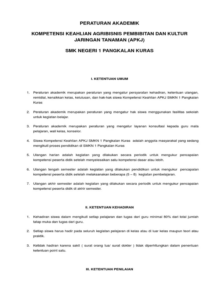 Penilaian akhir semester dilaksanakan oleh satuan pendidikan untuk seluruh mata pelajaran yang dituangkan dalam surat keputusan kepala sekolah. Persyaratan minimal kehadiran peserta didik untuk mengikuti pelajaran dan tugas dari guru;; Peraturan akademik smp darul falah tenggarong. Dokumen "peraturan akademik" untuk tahun pelajaran …………. Penyusunan buku pedoman ini menggunakan .